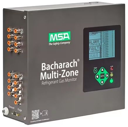 Bacharach 的多區氣體監測器提供最佳的冷媒洩漏偵測,鹵素氣體的業界領先 MDL 為 1ppm,採樣頻率最快,且能準確偵測最廣泛的冷媒範圍。大型圖形 LCD 顯示器與 LED 狀態指示器一目了然,提供系統整體概覽。